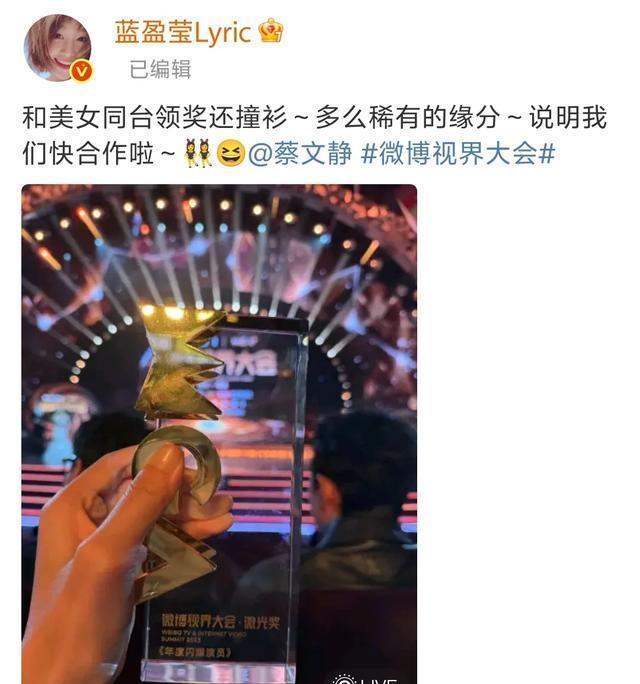 晚会现场也非常有趣,导播的镜头真的太给力了,实在是让人忍不住看了还想看。 蓝盈莹蔡文静“撞衫” 没想到今年红毯撞衫活动给到了蓝盈莹和蔡文静这。俩人刚好同台领奖,刚好都穿了白色挂脖深V裙,而且高开叉都差不多,甚至连发型也差不多。蓝盈莹倒是一脸无所谓,笑得很开心,不过旁边的蔡文静似乎有些不悦,脸上有些说不出的尴尬。 随后蓝盈莹发文回应俩人撞衫,蔡文静也同时回应。从俩人的文字里面可以看出,蓝盈莹确实是比较开朗,撞衫也无所谓,谁心态不好谁尴尬,蔡文静看起来就比较在意了。